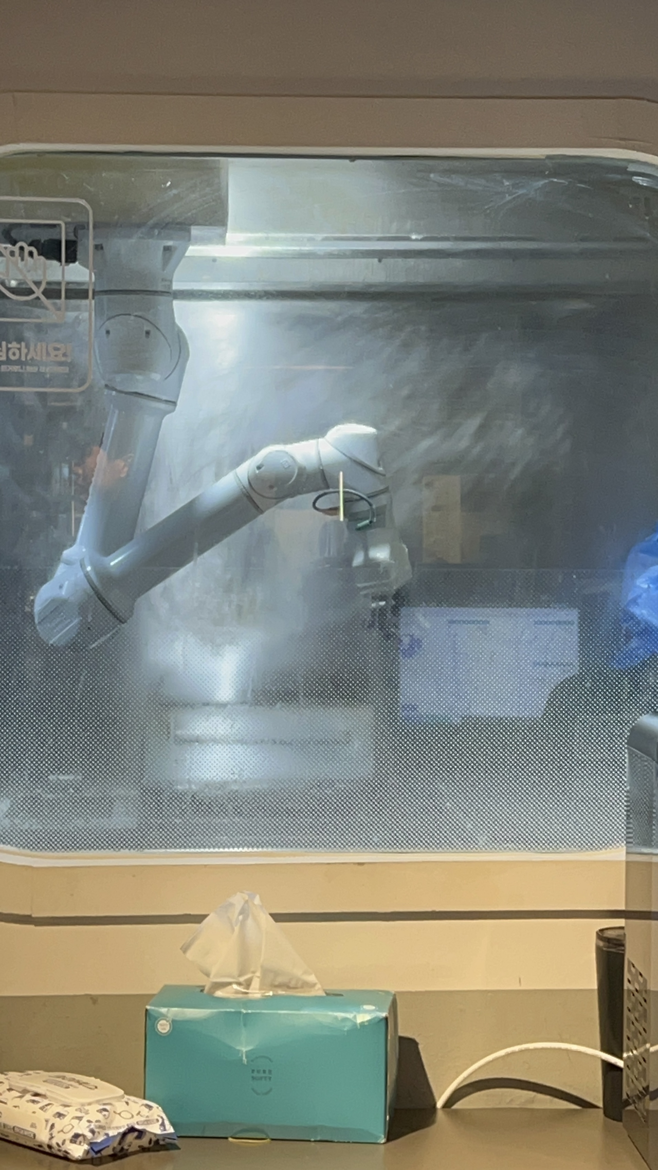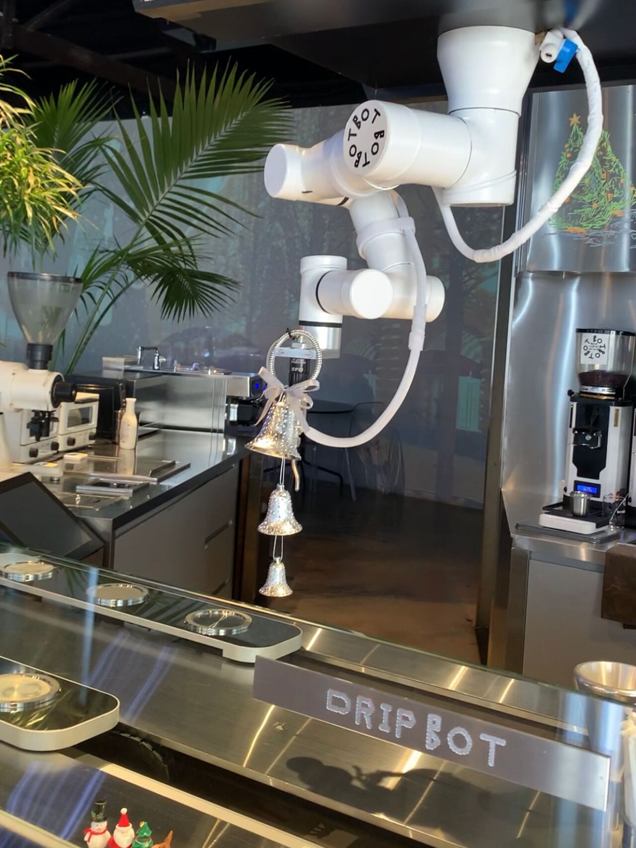 내부로 들어가자마자 맛있는 쿠키와 케이크도 보이고, 매장 곳곳에 재생되는 미디어 아트가 인상적이었는데요, 그래도 전반적인 것들은 겉에서 보나, 안에서 보나 일반 카페랑 별 다를게 없다고 생각하려던 찰나에 심상치 않은 기운이 느껴졌습니다. 시선을 돌린 곳에는 바로 이 녀석, 드링크봇(Drink Bot)이 저를 반겨주고 있었습니다. 그 옆에는 케이크 담당인 디저트봇(Dessert Bot)과 커피 담당 드립봇(Drip Bot)도 자리를 지키고 있었어요.